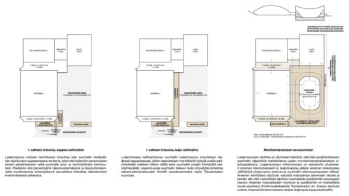 BLU.works jatkoi kilpailussa esittämänsä kokonaisratkaisun kehittämistä sovittuun suuntaan ja laati yksityiskohtaisen strategian alueen kehittämiselle.. Tätä täydentämään AOR Arkkitehdit saivat tehtäväkseen tutkia olemassa olevien Suur- ja Messuhallin toiminnallisia haasteita, mahdollista laajennusosaa ja uutta julkisivua Suurhalllille, sekä vaiheittain rakentumista mös mahd. uutta areenaa silmällä pitäen. Suunnitelmat piti sovittaa osaksi voittajien kokonaissuunnitelmaa.